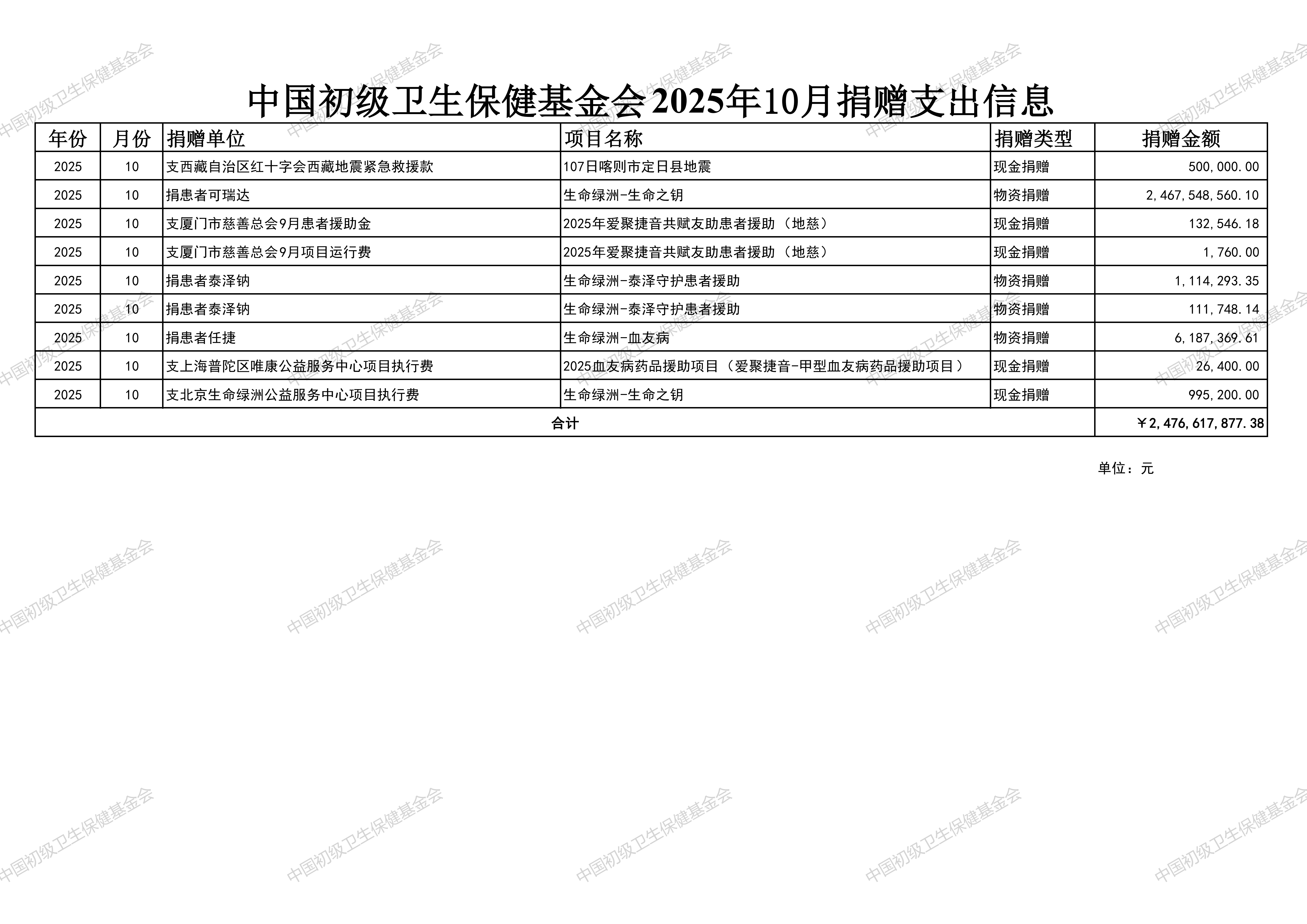 2025年10月份捐赠支出公示表