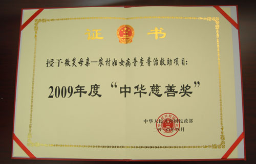 “微笑母亲——农村妇女病普查普治救助项目” 获“2009中华慈善奖——最具影响力项目”殊荣