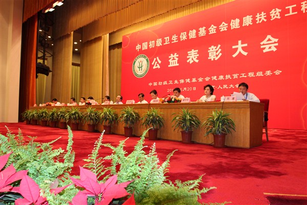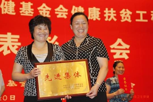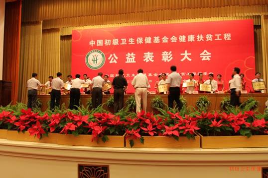 表彰大会由中国初保基金会理事、副秘书长周庆年主持。健康扶贫工程组委常务副秘书长刘湘代表组委会对近三年的健康扶贫工作进行报告:三年来,在农工民主党中央、卫生部和中国初保基金会第二届理事会的领导下,在各级政府及关心健康扶贫事业的爱心人士和爱心企业的支持下,健康扶贫工程公益活动已覆盖全国24个省市自治区、直辖市。公益活动内容涵盖(北京)免费举办地市、县(市、区)卫生局长培训班6期,培训卫生局长900人;免费举办乡镇卫生院长培训班11期,培训卫生院长1100人;(京外)免费主办、协办的卫生局长、乡镇卫生院长培训班20期,捐赠培训资金300万元;捐助26个县(市、区)开展了上消化道疾病普查,免费捐赠普查药具200万人份,直接受益人口1950万,查出上消化道疾病3万余人,中早期食管癌、胃癌372人,给予查出的癌症患者每人1000元的救助金;在全国24个省256个县(市、区)实施了妇女病普查普治项目,免费为819.2万名适龄妇女进行了五项妇科检查,共免除检查费1亿多元,捐赠普查普治设备价值1.2亿元,查出患有各类妇科疾病的妇女532万人,对查出的宫颈癌和乳腺癌患者498人给予每人1000元的救助金;资助部分地方人民政府建立宫颈癌早期筛查中心21个,资助额度3300多万元。这些公益项目的实施获得了五个满意即“群众满意、卫生院满意、卫生局满意、党委政府满意、基金会满意”,赢得了“百姓得实惠、政府得民心、医疗机构得发展”的良好社会反响。