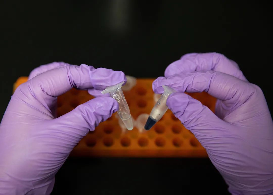 在中国科学院天津工业生物技术研究所实验室,科研人员展示人工合成淀粉样品(9月16日摄)。新华社记者 金立旺 摄