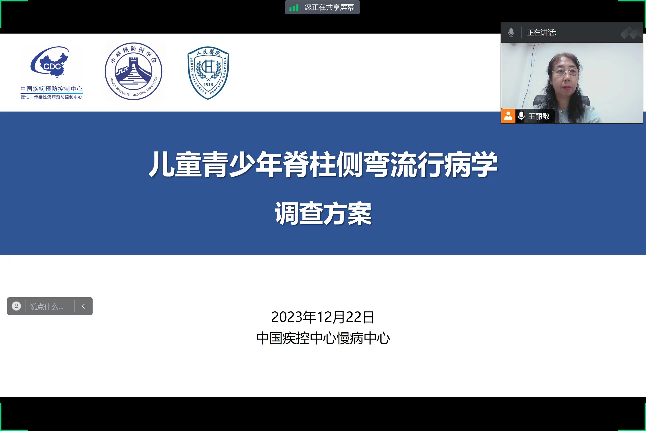 王丽敏教授就《儿童青少年脊柱侧弯流行病学调查方案》进行授课