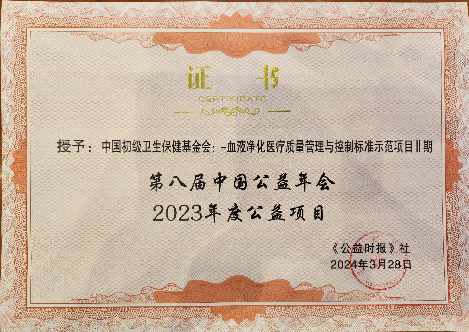 2024年3月28日,第八届中国公益年会在北京举行。本届年会以“永葆激情 行而不辍”为主题,全方位、深层次地展现中国公益的发展现状,为关心社会发展的意见领袖和行业精英提供一个真正开放、包容、有营养的思想市场和交流平台,并发挥“聚合效应”,汇聚各方力量,共同推动公益事业发展。同时,2023年度中国公益人物、2023年度中国公益企业及2023年度中国公益项目正式发布,中国初级卫生保健基金会(简称“初基会”)理事长曹锡荣荣获“2023年度中国公益人物”,初基会联合北京康盟慈善基金会共同举办的“血液净化医疗质量管理与控制标准示范项目‖期”荣获“2023年度中国公益项目”。曹锡荣理事长出席活动,并与众多业内专家和领军人物一起共谋慈善事业发展,就公益行业的热点话题和前沿问题进行深入探讨和交流,共话公益未来之路。